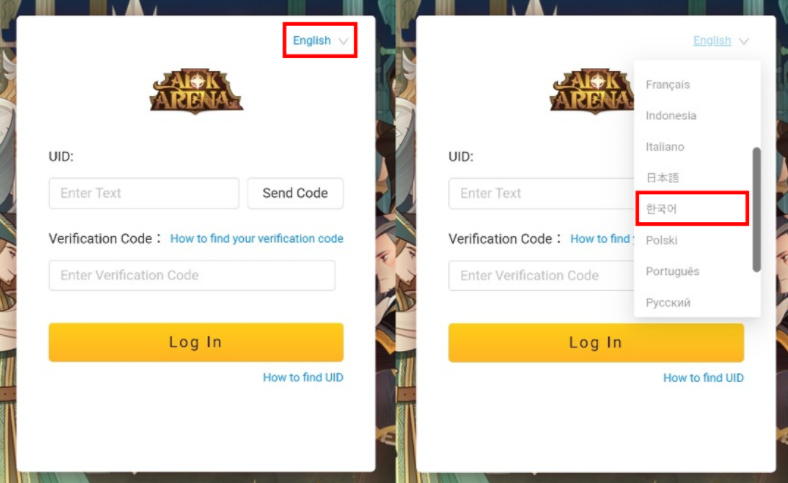 3. AFK 아레나 개인 UID를 입력하고, 인증번호 받기를 누릅니다.